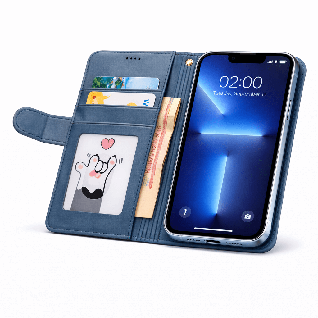 This iPhone 13 flip wallet case includes 3 card slots for ATM cards, ID, and cash, making it perfect for daily use and travel. The back magnet closure keeps the cover securely closed, helping protect your screen while keeping your cards safe inside. If you are searching for a stylish and practical iPhone 13 flip wallet case in New Zealand, this model is a great choice.