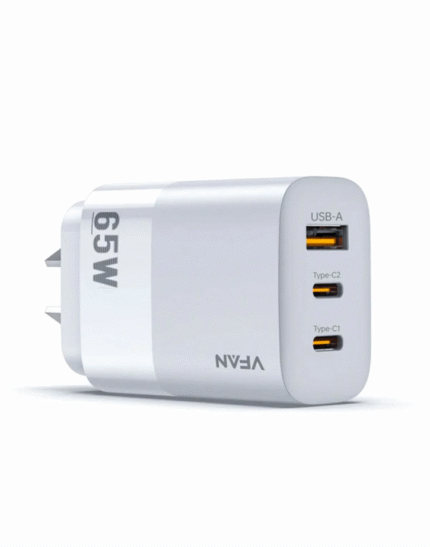 VFan AU7 Ultra Fast Charger 65W (2× USB-C & 1× USB-A) Upgrade your charging experience with the VFan AU7 65W