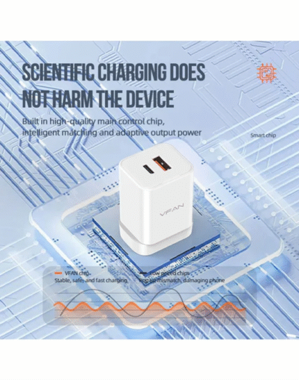 VFan AU6 20W USB-A & USB-C Dual Super Fast Charger Charge your devices faster and more efficiently with the VFan
